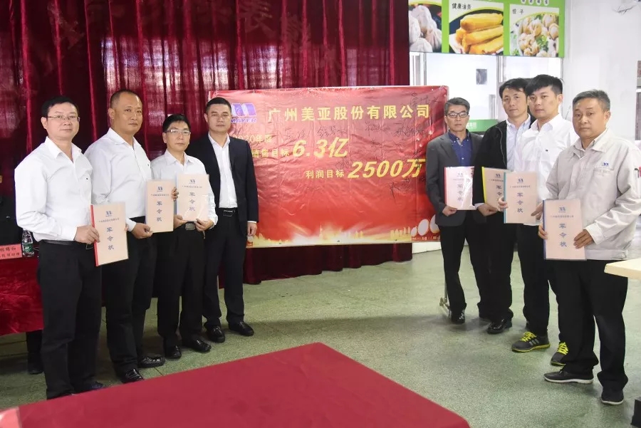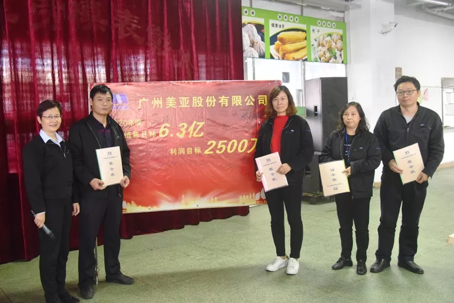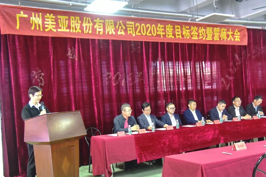 2020年1月10日下午,广州美亚2020年度目标签约暨誓师大会,在广州美亚员工餐厅拉开帷幕。广州美亚董事长徐立地、副总经理温丽曼、副总经理屈伟、总经理助理林锦和、总经理助理莫少文等领导与各部门经理、主管、业务精英及车间员工共计300余人参加会议。