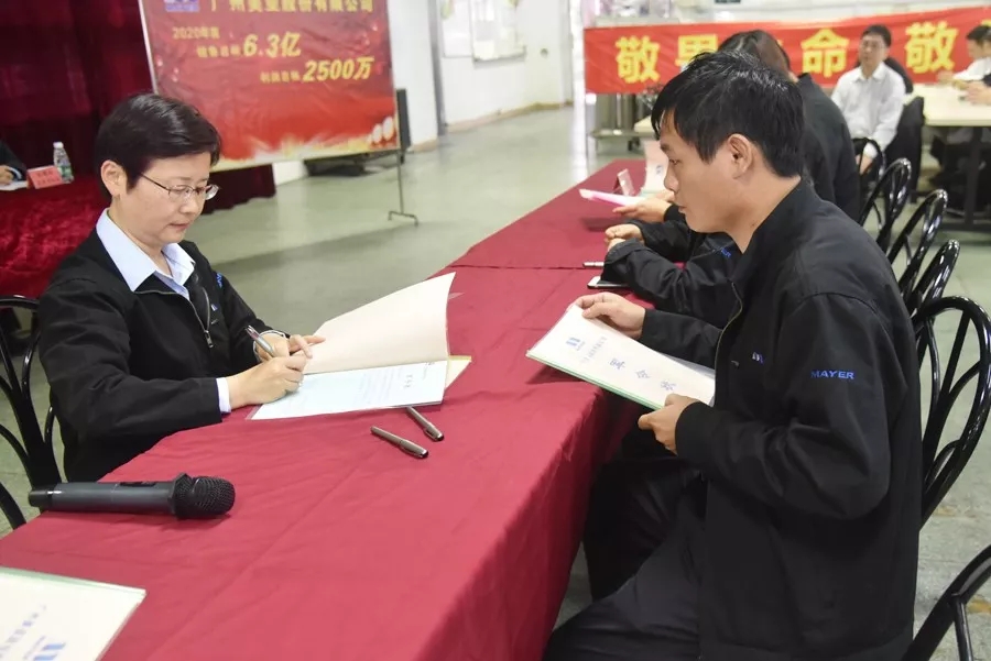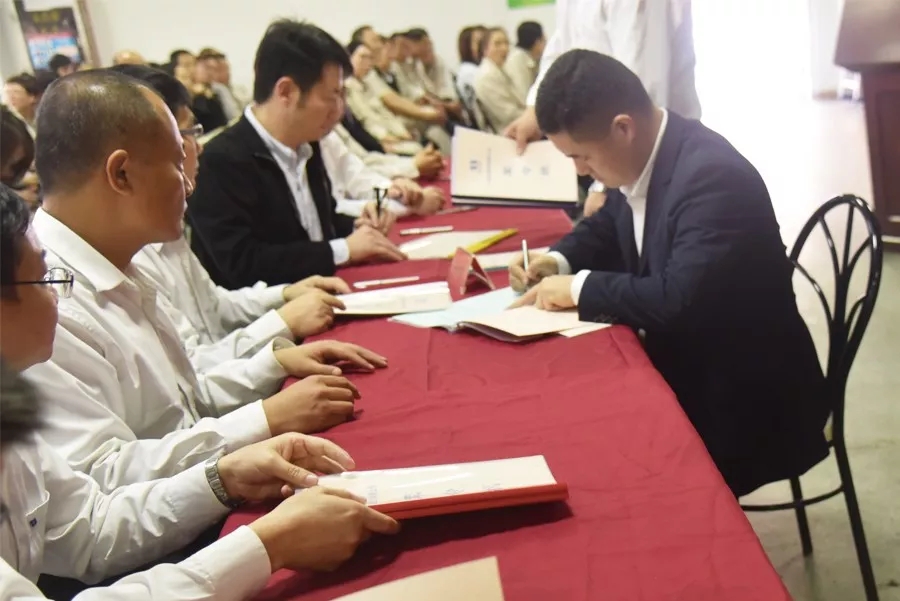 会上,各高管、部门负责人及销售代表签订了《2020年度销售目标和安全生产责任状》。
