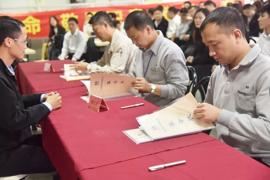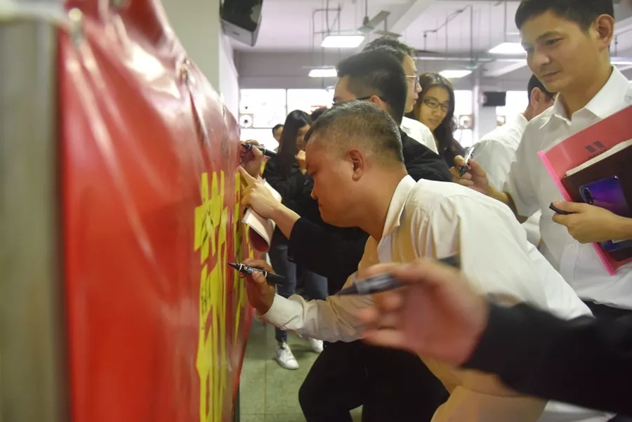 会上,广州美亚销售精英代表和生产一线员工代表分别誓词。他们铿锵有力的声音,无不在彰显他们完成目标的决心。