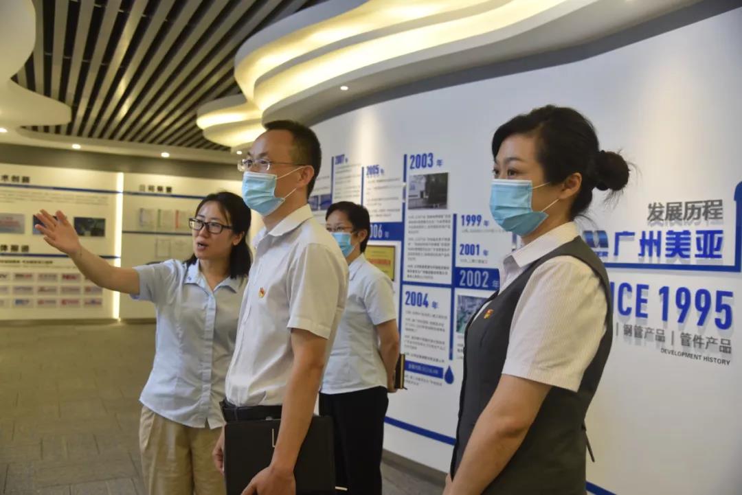 7月3日上午,广州开发区行政服务管理中心副主任谢学文一行到广州美亚开展锦旗赠送暨“大党建+1+5”签订活动,广州美亚副总经理温丽曼女士、广州美亚党支部书记许盈华女士等陪同。